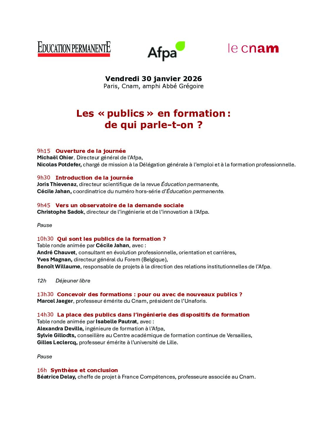 Voir le programme de la journée du 30/01/26